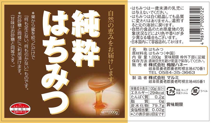 原材料の原産国:はちみつ(中国);最終加工地:日本