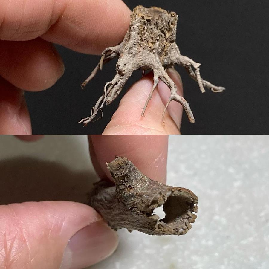 A large tree rotting deep in the mountains covered with moss, and trees growing from it, was made into a palm-sized base.