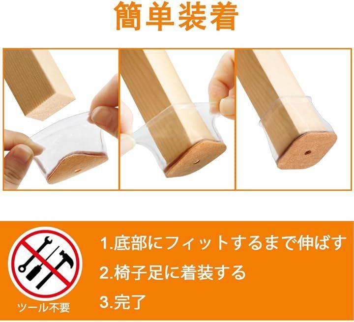 「簡単装着」この椅子足カバーは柔らかいシリコン製なので、(切る、接着剤、ほかのツールは不要)椅子足の底部にかぶせるだけで簡単に装着できます。