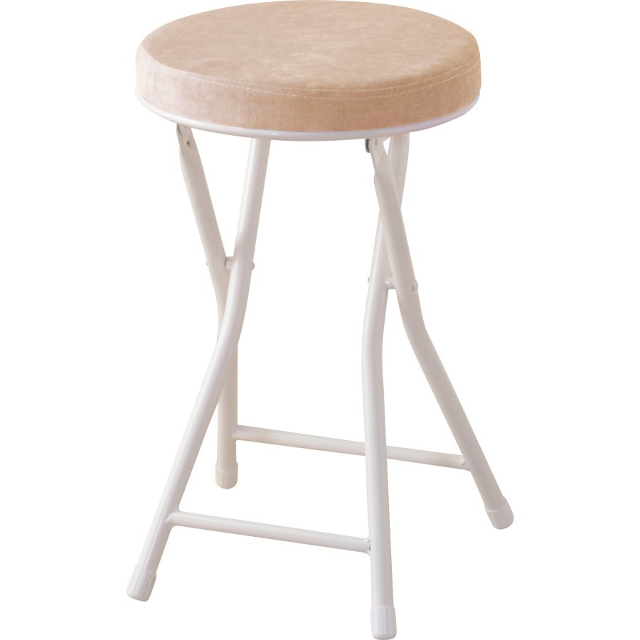 椅子 折りたたみ スツール おしゃれ フォールディング 腰掛け イス 円形 軽量 ベロア調生地 クッション 座面 厚み 高さ49cm 直径30cm 来客 ダイニング 作業 キッチン