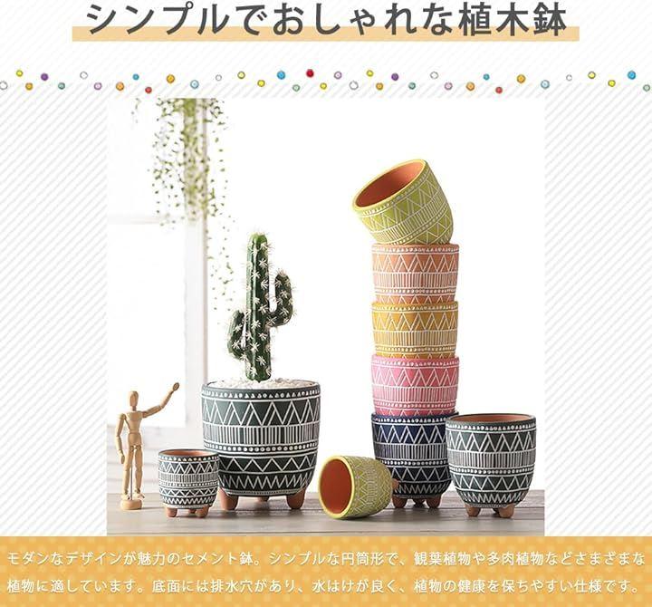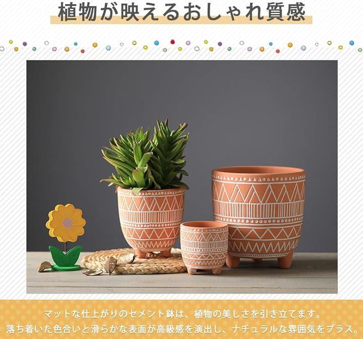 「植物が映えるおしゃれ質感」マットな仕上がりのセメント鉢は、植物の美しさを引き立てます。