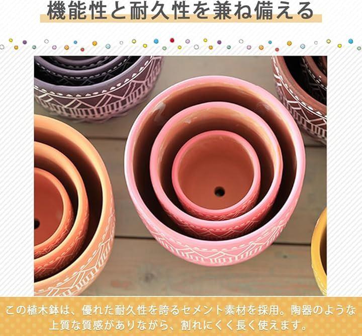 「機能性と耐久性を兼ね備える」この植木鉢は、優れた耐久性を誇るセメント素材を採用。