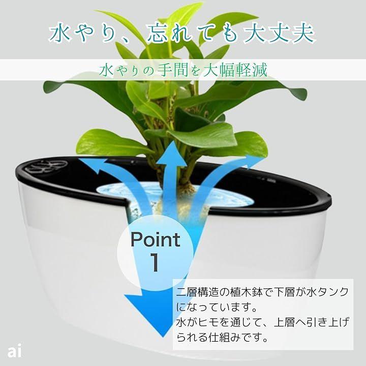 「水やりの手間を大幅軽減」自動給水機能が植物に適切な水分を供給し、忙しい人でも簡単に育てられる。