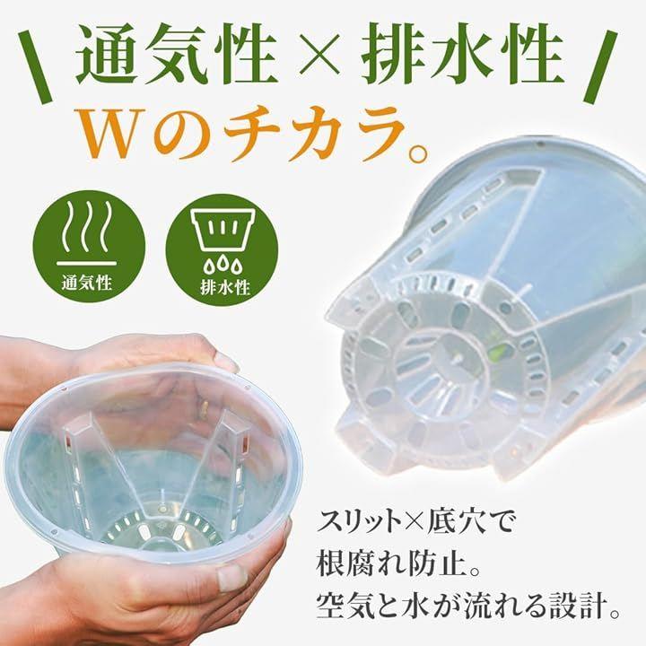 「通気性と排水性に優れた設計」スリット構造と鉢底穴の組み合わせにより、根が呼吸しやすく、過剰な水分を効率よく排出します。