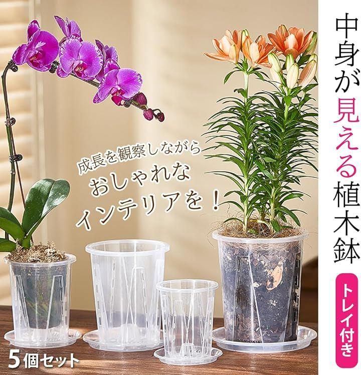 「スリット構造で根を健康に育てる設計」 透明スリット鉢は、側面から底部にかけて排水穴が施されており、優れた通気性と排水性を提供します。