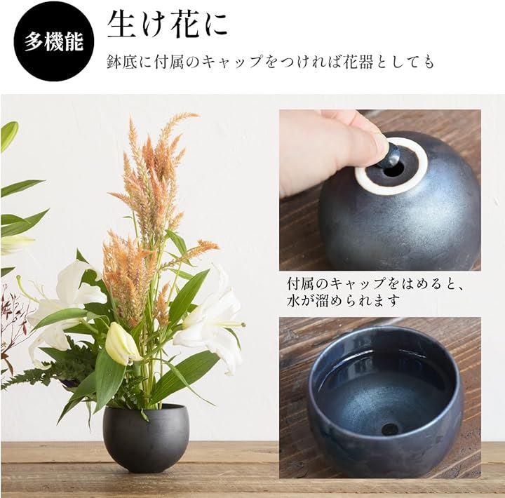 キャップをはめると水をためられるため、生け花の花器や鉢カバーとしても使用可能な2WAYの植木鉢