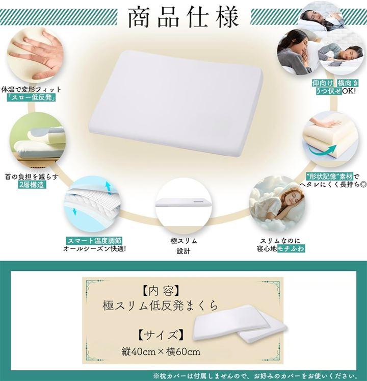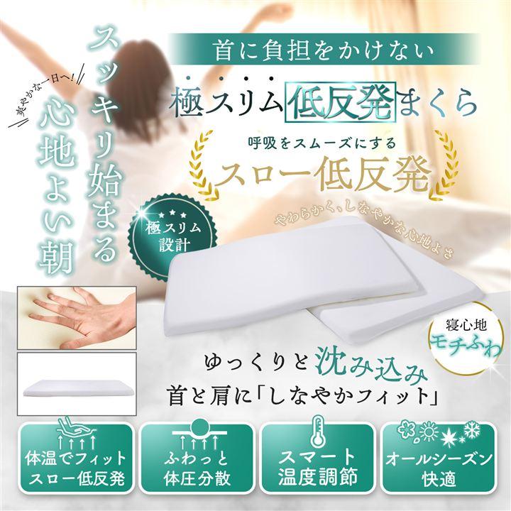 低さと寝心地を追求した「極スリム低反発まくら」/ 「一般的な低い枕でも”なお高い”と感じる方」「首や肩の負担を減らしたい方」のための低反発枕です。