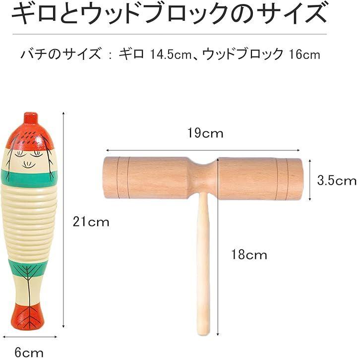 ギロをこすると「ギ~っ」と鳴き声のような音が、ウッドブロックを叩けば「コーンコーン」という軽快な音が響きます。