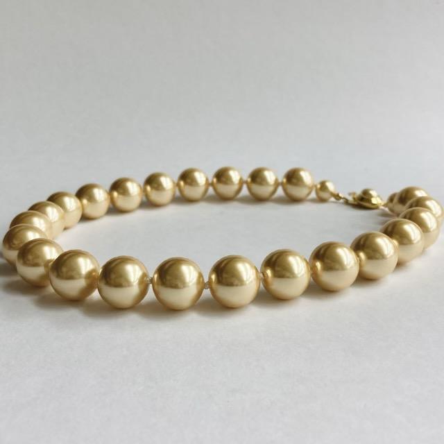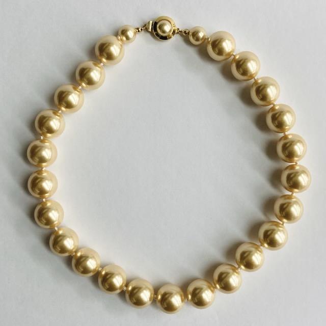 樹脂パールall knotネックレス/16mm約44cm/ゴールド/made in japan