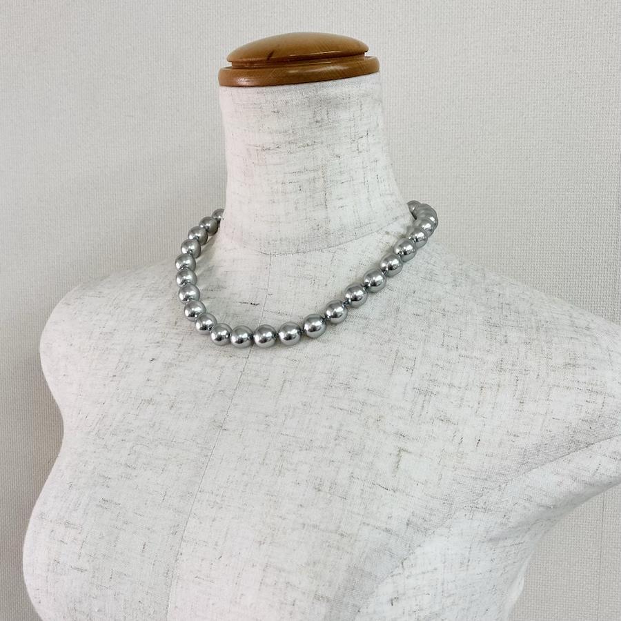 樹脂パールall knotネックレス/12mm約44cm/グレー/made in japan