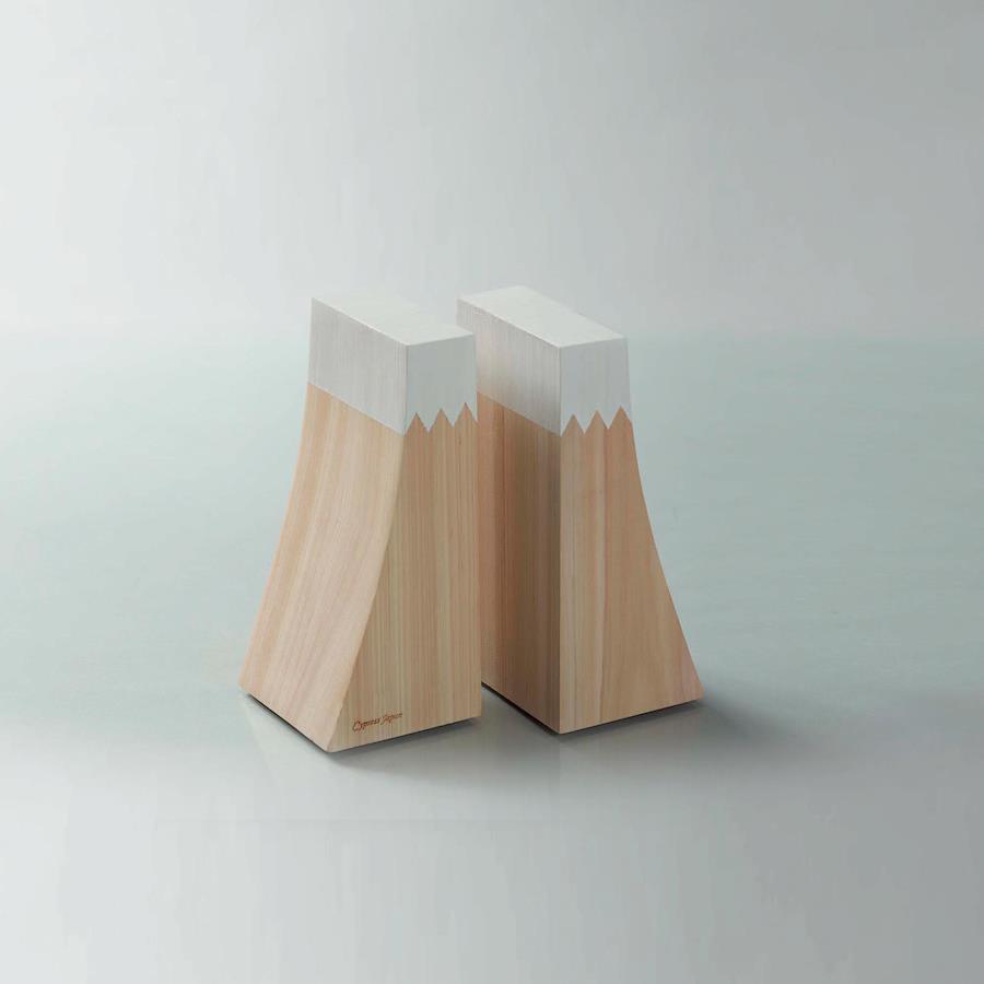 日本産ヒノキ集成材から作った「ブックスタンド」です。雪の富士山をモチーフにしたデザインはどこに置いても目立つ一品です。底面にはすべり止めチップが付いていますが本が倒れない程度にご使用ください。