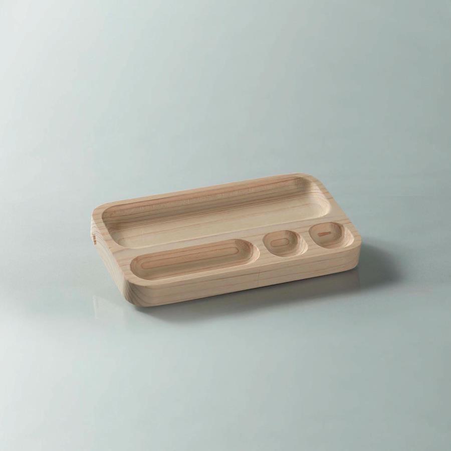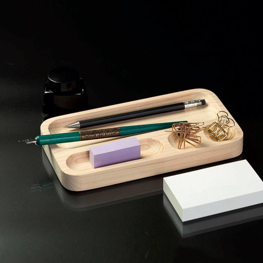 日本産ヒノキ無垢材から作ったペントレイ。筆記具やクリップ等の他、アクセサリー小物の置き場としても色々と使えます。