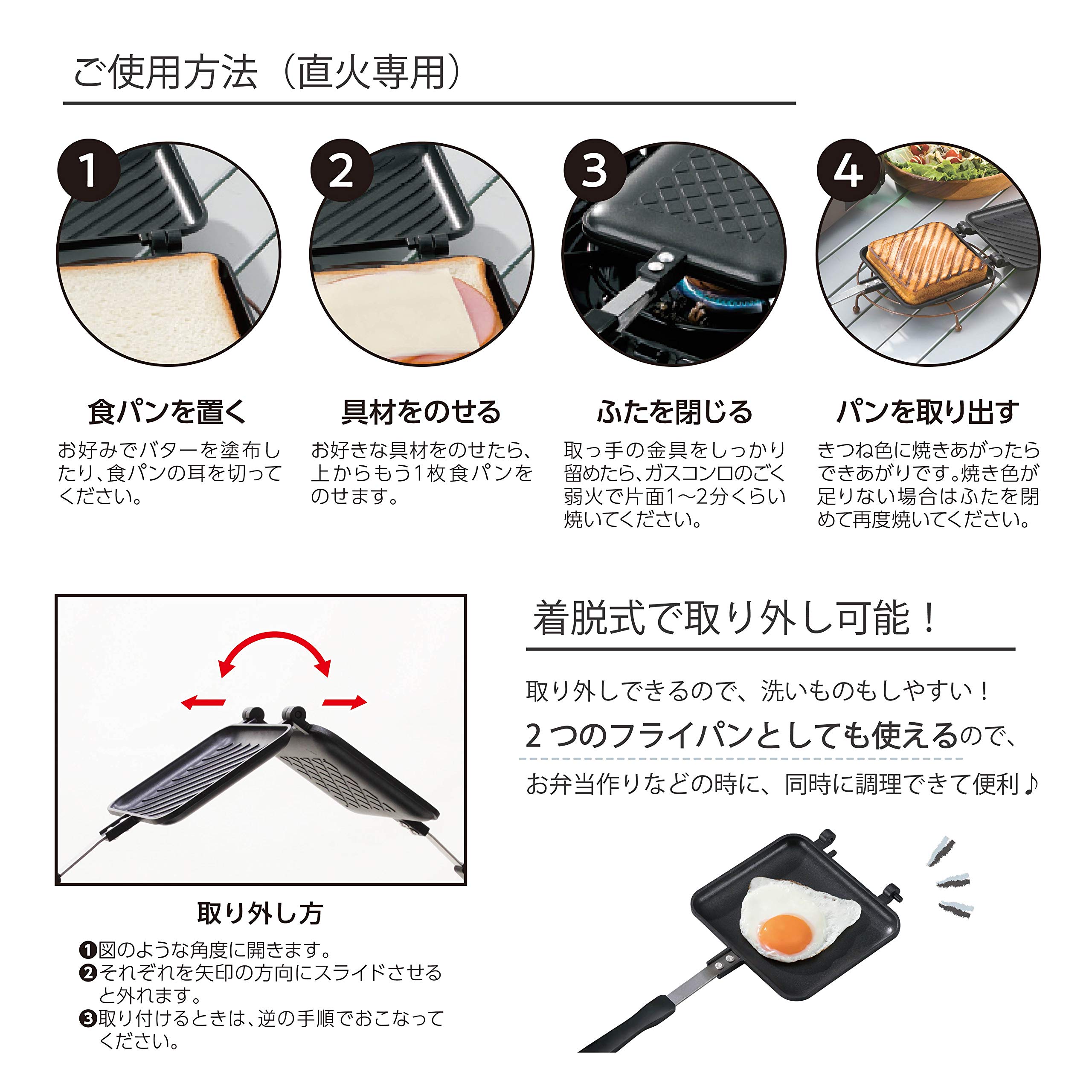 武田コーポレーション 直火式ホットサンドメーカー ブラック 全長35×幅15×厚み3cm 挟んで焼くだけ! HS18-35BK