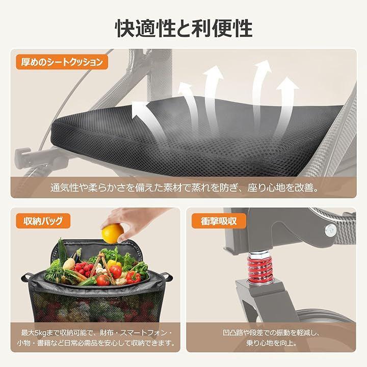 散歩・買い物・休憩を一台で完結できる多機能モデルで、日常の外出をより自由で楽にします。