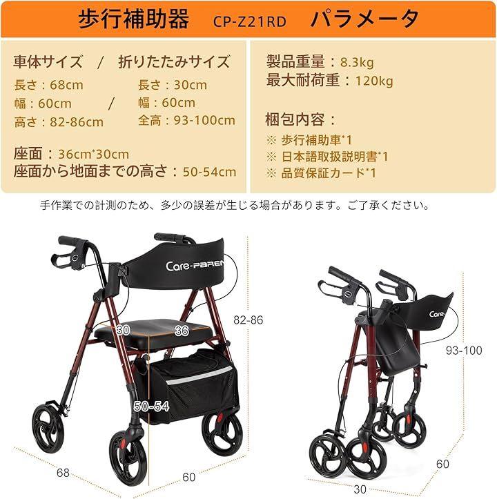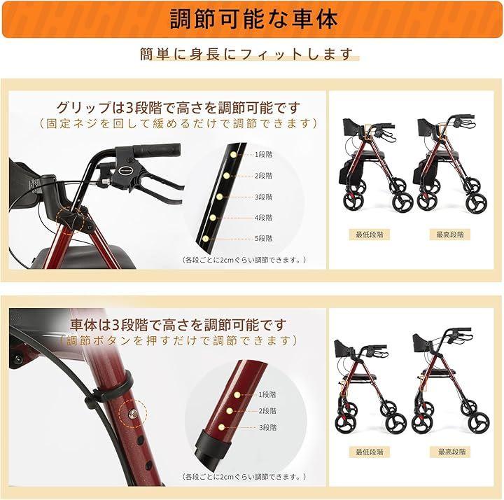 「調節可能な車体デザイン」歩行器の車体とハンドルの高さは調節可能で、ユーザーのニーズに合わせて調整できます。