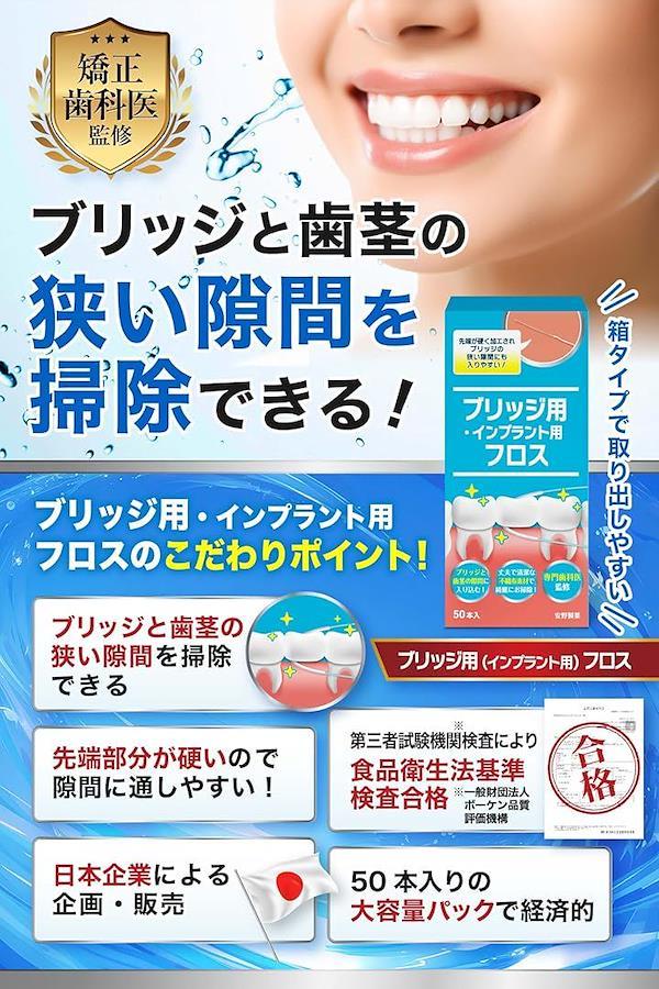 矯正用 フロス のトップメーカーである安野製薬がお客様のお声を受けブリッジ・インプラントの方向けに、狭い隙間でもスムーズに フロス ができる製品を開発しました。