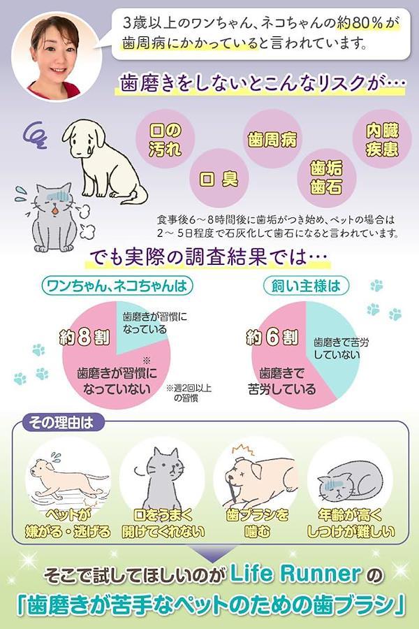 歯磨きが苦手なペット(犬・猫)に是非お使いいただきたい歯ブラシです。