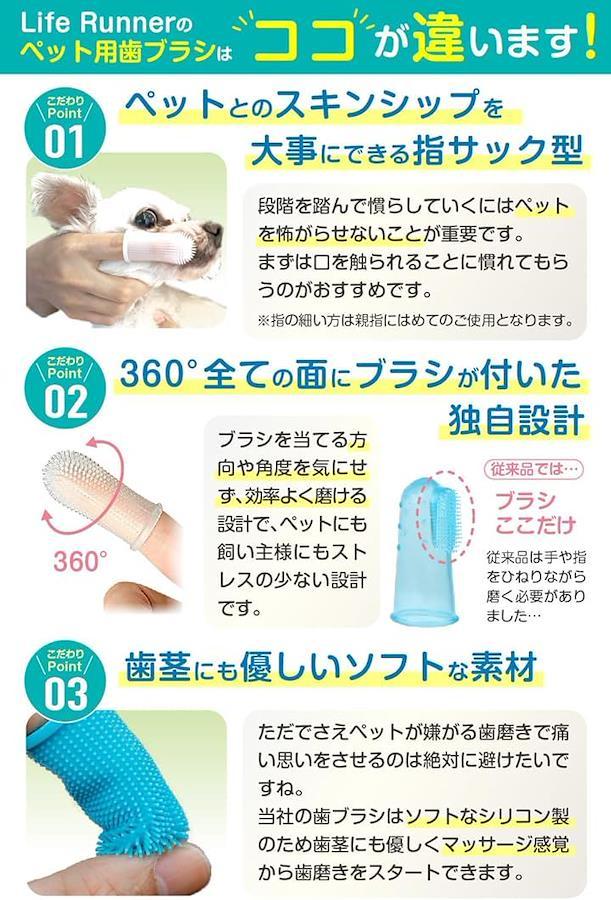 「犬・猫に優しいシリコン製」ペットがなるべく嫌がらないように、歯茎を傷つける心配のないシリコン製のブラシを採用しています。