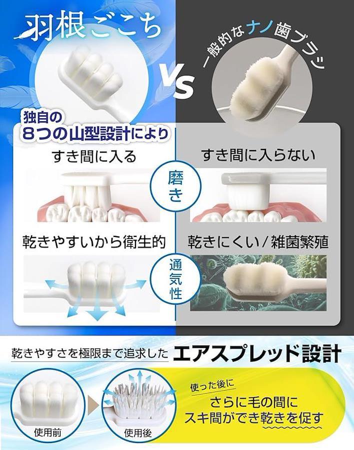 羽根ごこちは歯科医師による監修のもと、歯茎にやさしい歯ブラシに仕上がりました。