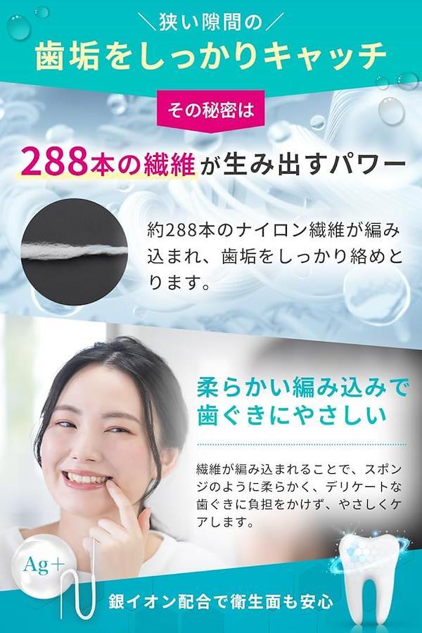 「狭い隙間の歯垢をしっかりキャッチ」約288本の繊維が編み込まれたフロスで見えない歯垢までゴッソリ絡め取ります。