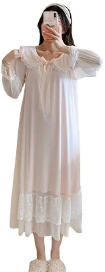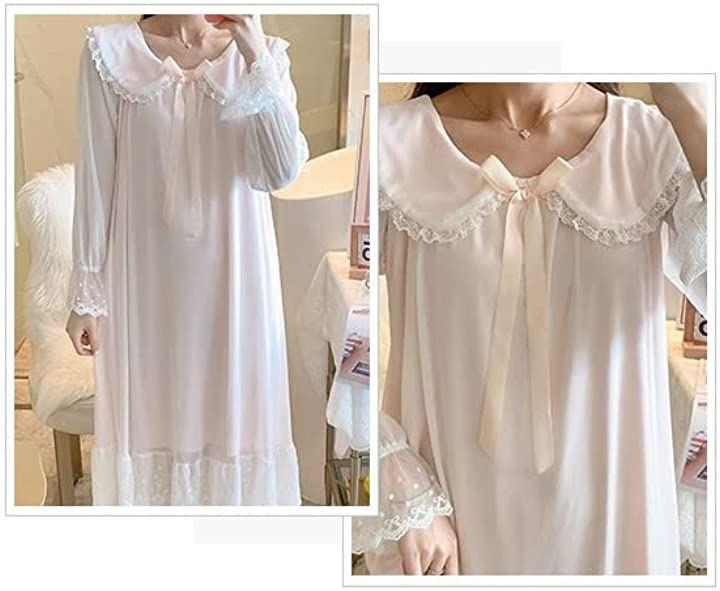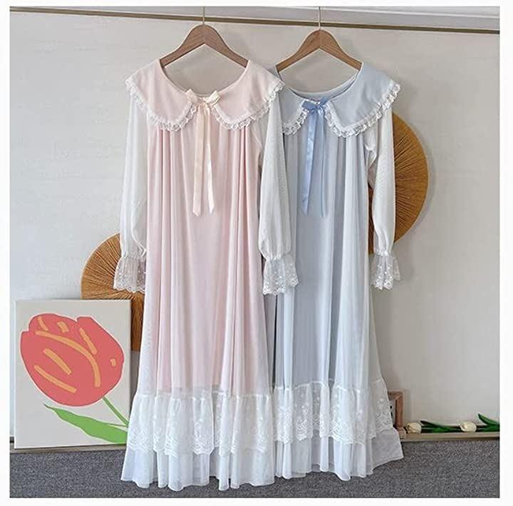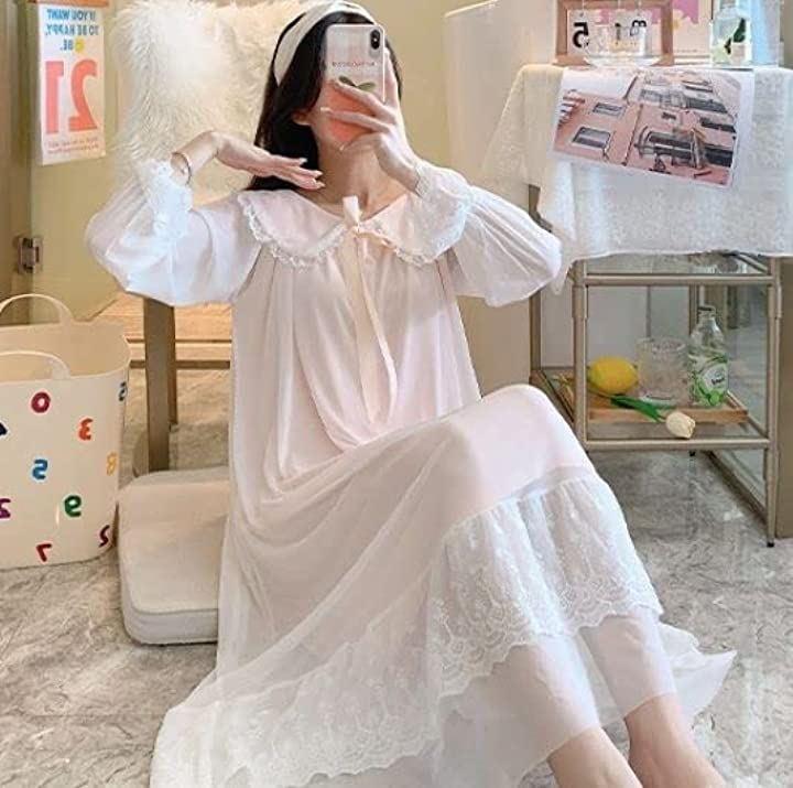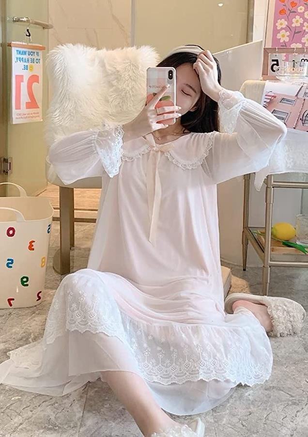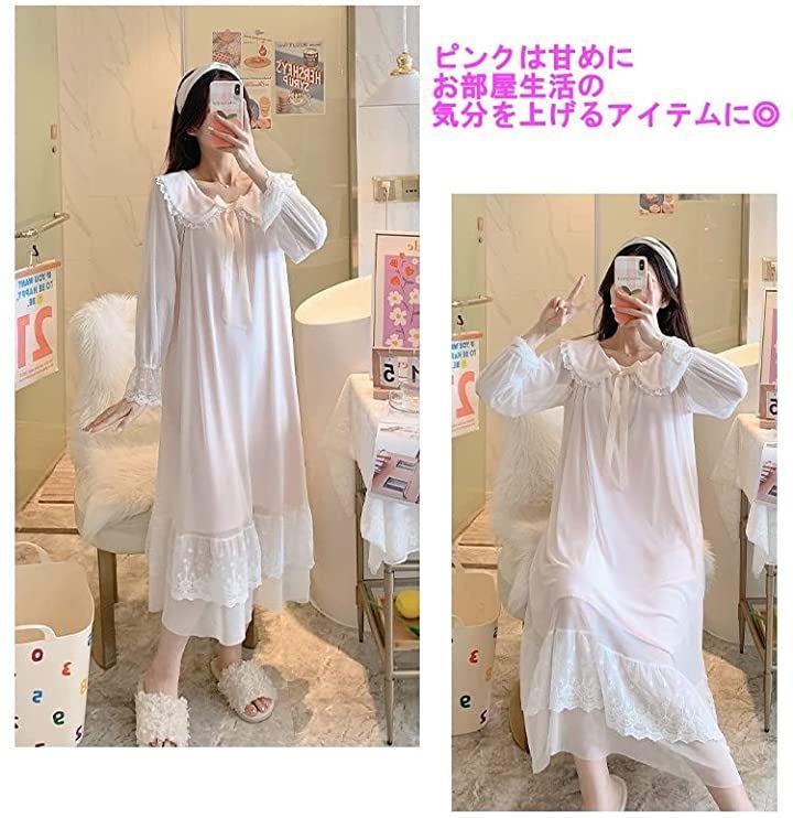 ・胸元のリボンとレース付きの襟が特徴的なネグリジェです。