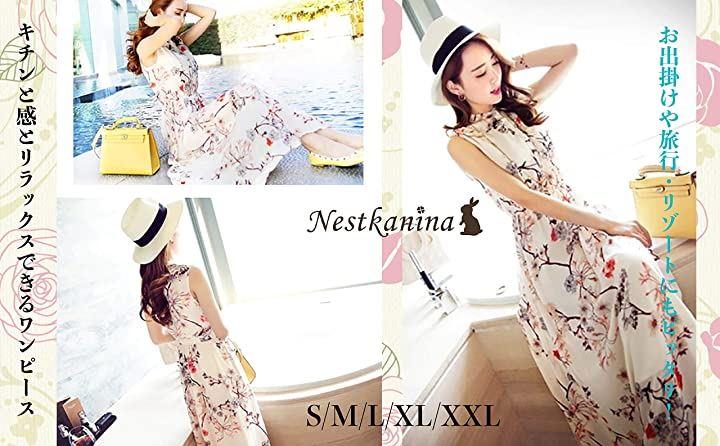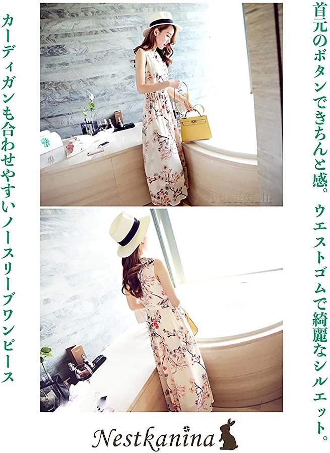 ・爽やかな小花柄のノースリーブマキシ丈ワンピース。