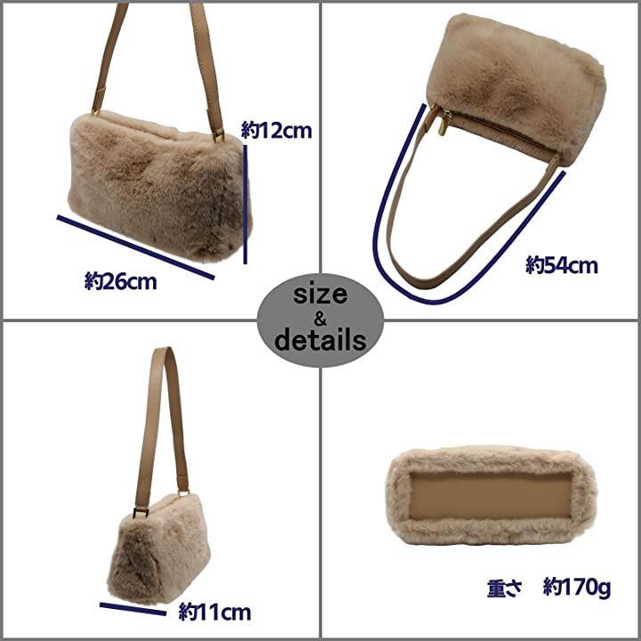 ・ファーバッグは小さめだけど、マチがしっかりとあるスクエアタイプなので、スマホや化粧品、お財布など必要なモノがしっかりと入る、 ちょうどいい大きさのバッグです。