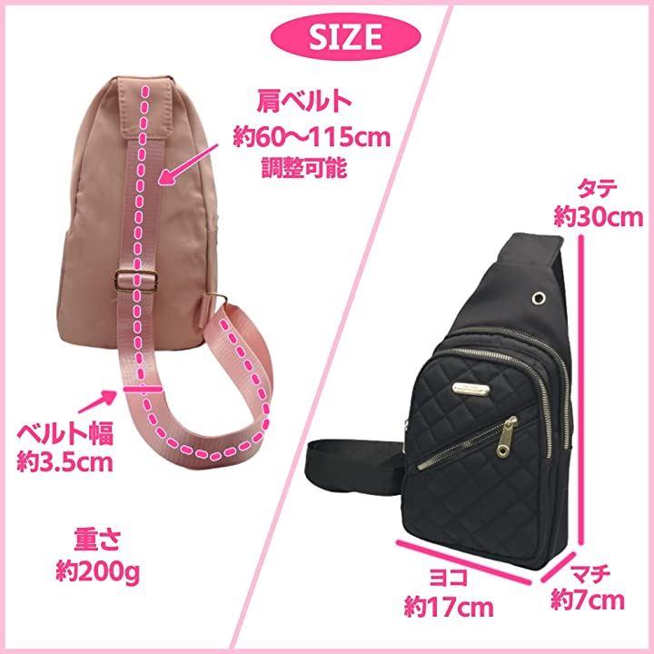 ・ボディバッグ本体の表地はキルティングデザインのツヤ消しタイプだから季節を問わず、 どんなコーデでもOK. キルティングデザインは見た目もやさしい印象を与えてくれるから女子力UP.軽量でシンプルカラーで使い勝手*