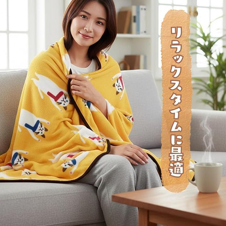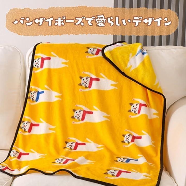 「癒しの猫デザイン」バンザイポーズで猫が手をあげる愛らしいデザインが魅力のブランケット。