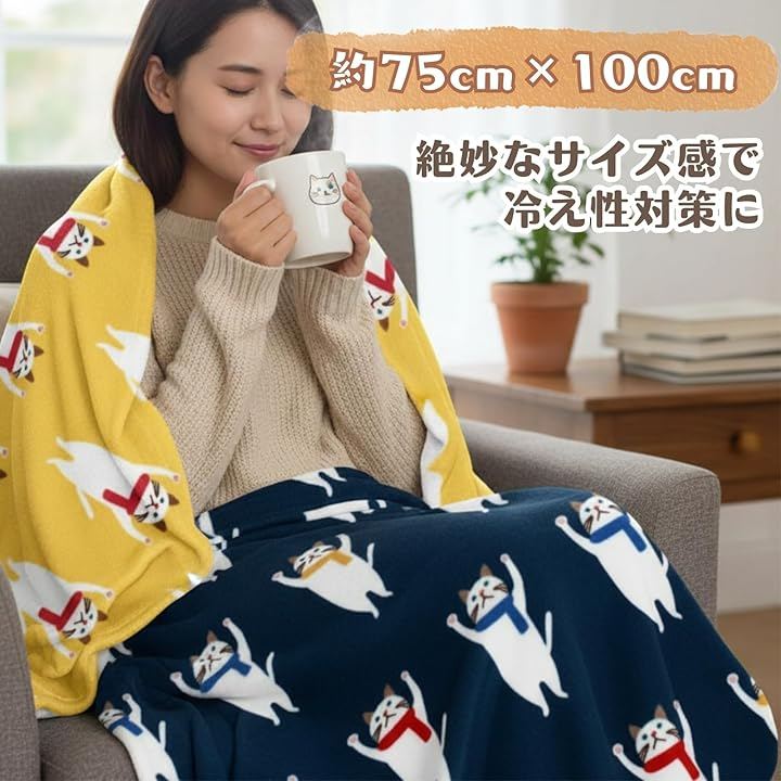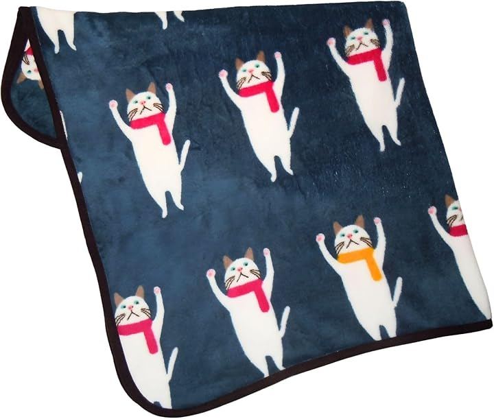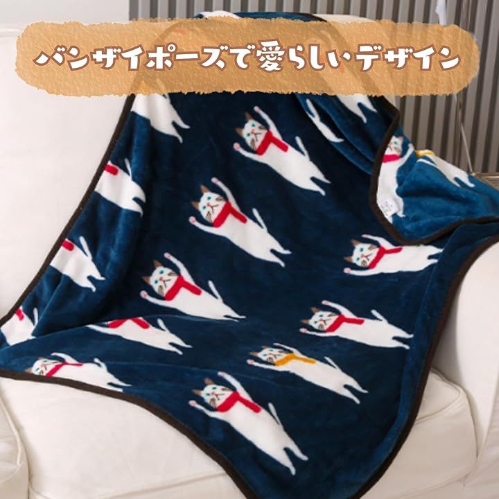 「癒しの猫デザイン」バンザイポーズで猫が手をあげる愛らしいデザインが魅力のブランケット。