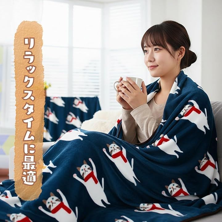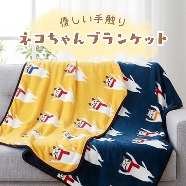 誕生日やクリスマスのギフトとして、この可愛い猫柄ブランケットは大変喜ばれます。