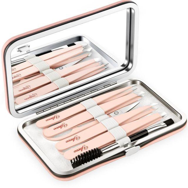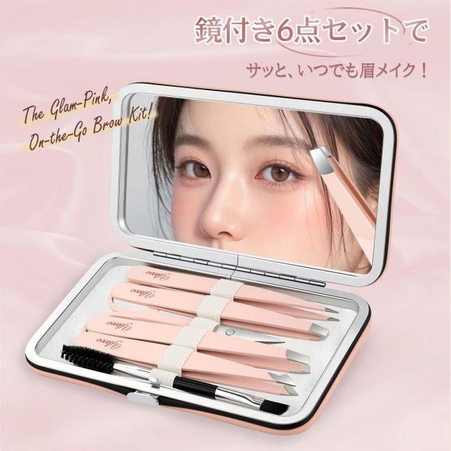 カラー:ピンク◆商品名:毛抜きピンセットツイーザーコスメピンセット男女兼用眉毛抜き眉毛処理高級ステンレス製専用レザーケース付き使いやすい6本セット(ピンク)