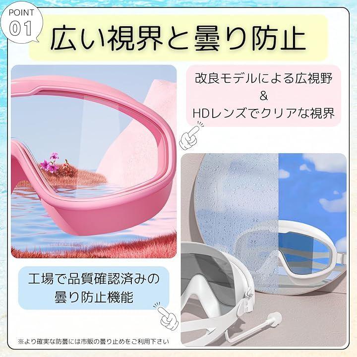 「広い視界と曇り防止」大きめのレンズ設計により、視野が広く明るく保たれます。