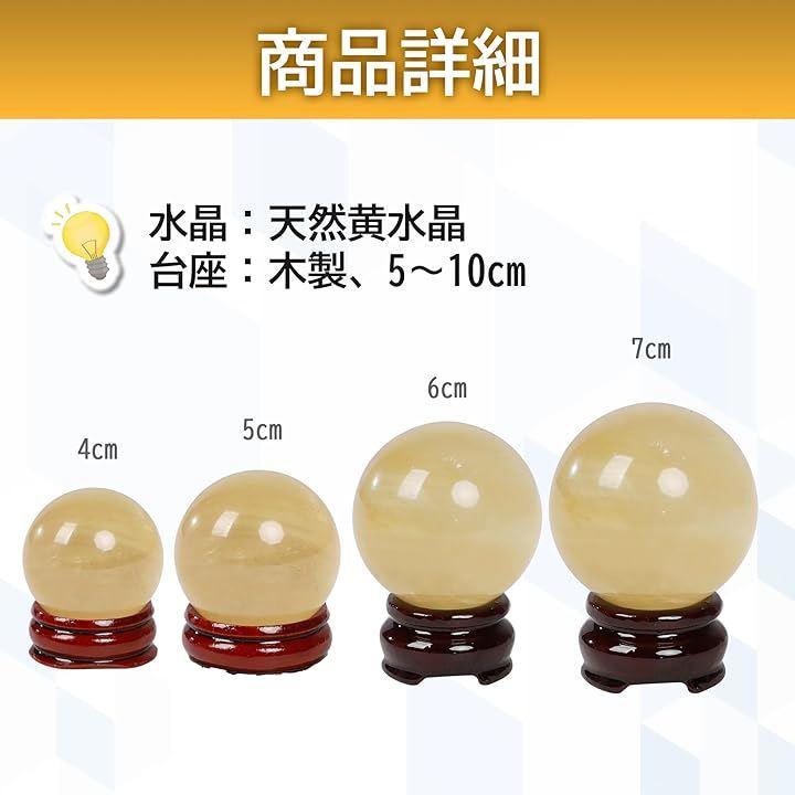 「商品詳細」水晶:天然黄水晶、直径:約4~7cm/台座:木製、サイズ:約5~10cm *天然水晶を使用しているため、模様や柄にはそれぞれ個体差があります。