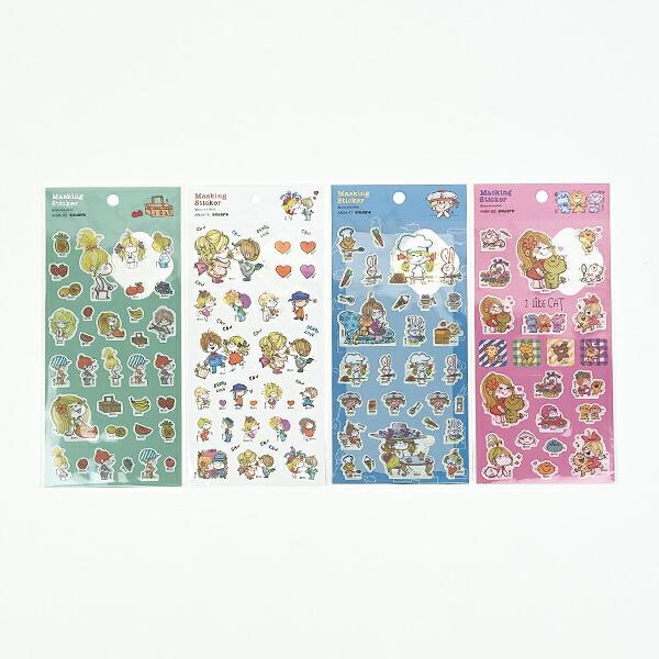 亜土ちゃんのかわいさがつめこまれたシール♪透け感がかわいい、貼って剥がせるマスキングテープ素材♪