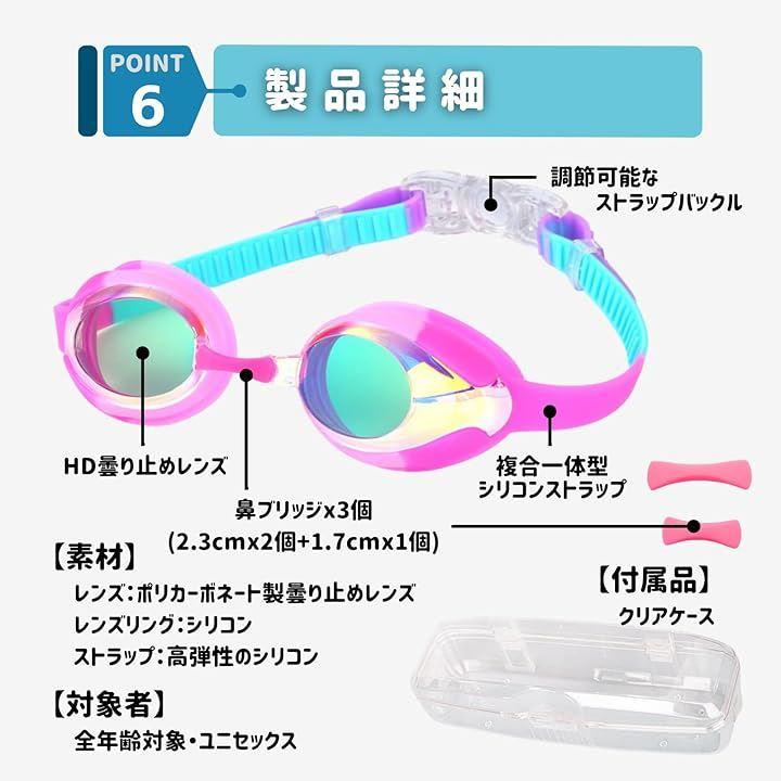水泳 ゴーグル 水中メガネ キッズ ジュニア 子供用 曇り止め ミラーレンズ ケース付き