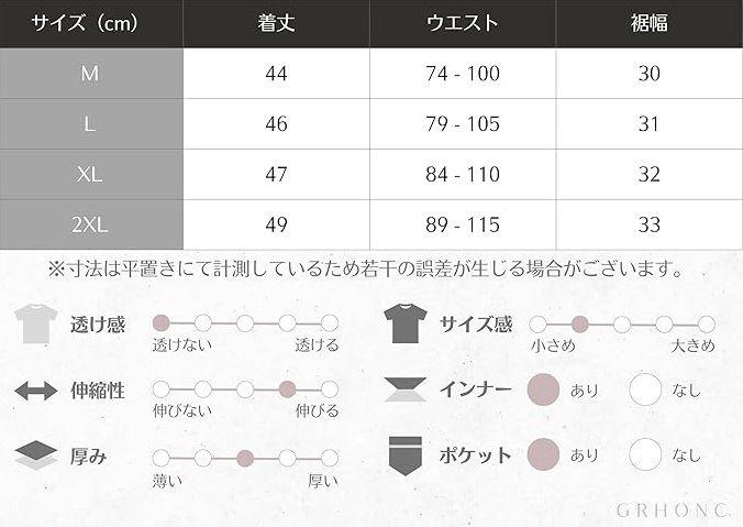 「2XL」着丈:約49cm ウエスト:約89-115cm 裾幅: 約33cm
