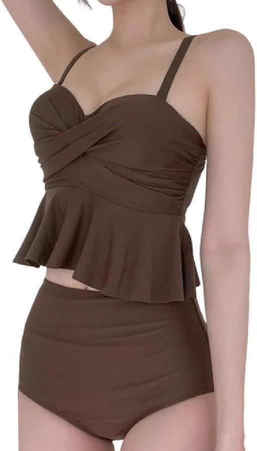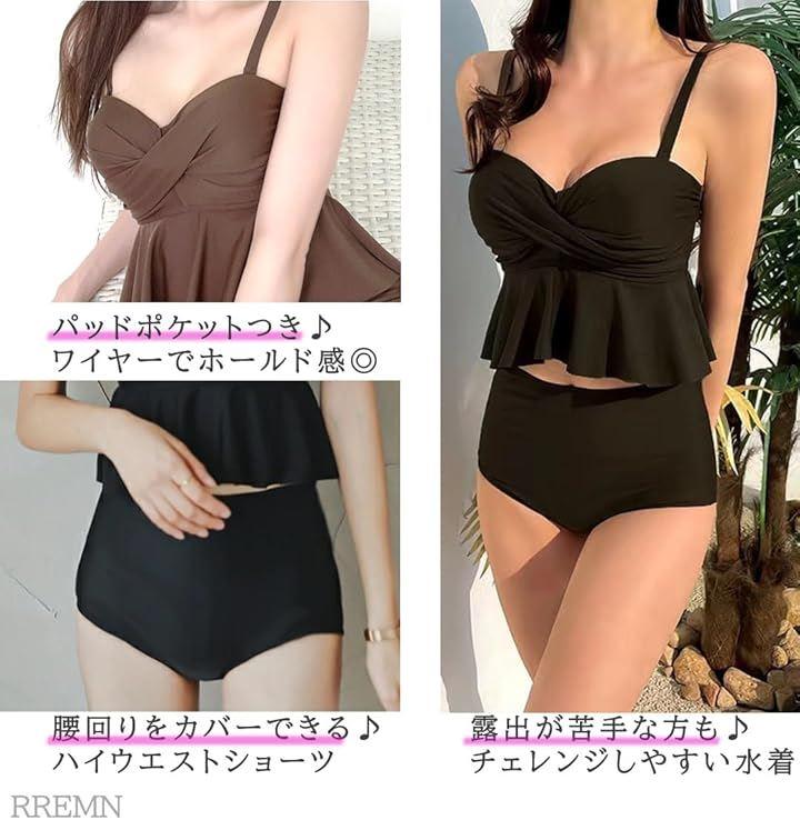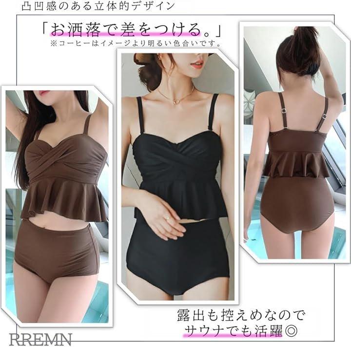 フリル x ハイウエストボトム ぽっこりお腹をさり気なく隠せる ビキニがちょっとハードルが高いと感じる方にもおすすめ 落ち着いた色合いなので サウナ にも ピッタリ です。