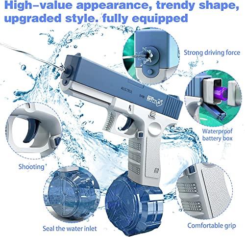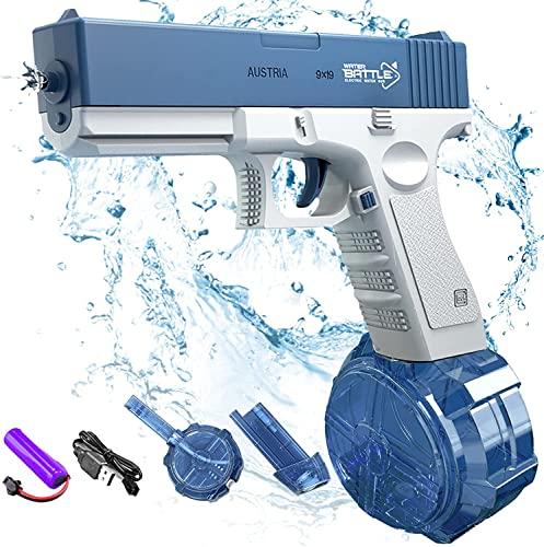 【クリーンヒット】タンクに水を入れて、トリガーを引くだけで自動で発射!満水で434回+58回の連続発射が可能。電動式、連続発射でハードに遊べます。パワフルなショットを感じてください。 子供たちを大喜びさせる水鉄砲です。 【大容量貯水タンク】電動水鉄砲には、大容量の2つの異なるスタイルのウォータークリップが付属しており、たくさん水が入るので、長い時間あそぶことができます。 ポンプレバーを動かして加圧してから引き金を引いて発射するという仕組みで、威力がかなりあります、抜群の飛距離は66cmまで達します。 十分な水圧によって鋭い水の噴射を楽しめます。 【安全性水てっぽう】高品質のABSプラスチック製、耐久性があり、気密性が高く、水漏れに防止するために密封された漏れ防止が設計されています、無毒で環境に優しいプラスチックで作られており、 ウォータークリップが透明なので残量もひと目でわかりやすく、子供や大人に非常に適しています、水合戦もより楽しい。 【USB充電式電動ウォーターガン】電動ウォーターガンは、USB充電対応、フル充電時に圧力をかけずに2時間使用でき、バッテリーを頻繁に交換する必要はありません。 大容量バッテリーは、屋外や充電が不便な場合でも非常に信頼性があります。 【夏の定番水遊びおもちゃ】子供や大人と一緒にこの水ピストルを楽しんでください。水遊び、庭やプール/海水浴/夏祭バーベキューなどで楽しめます、また大人もパーティー等でもこのデザインならどこでもなんでも楽しめますよ。