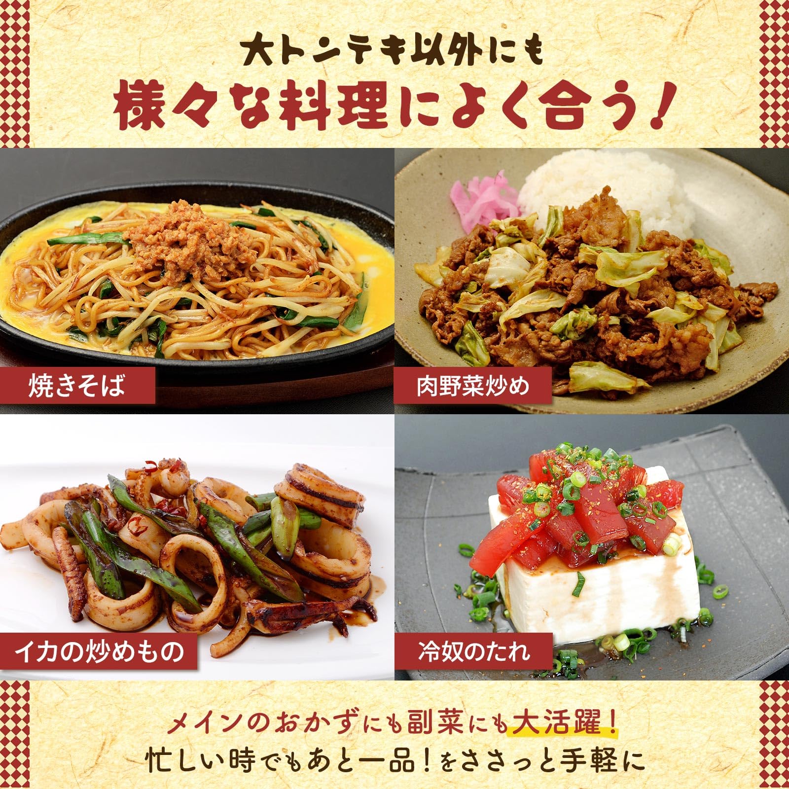 3営業日以内に発送≪新品未開封品≫三重県四日市名物の大トンテキが手軽にできる調味料です。まろやかな酸味、甘味、旨味をバランスよくブレンドした秘伝のたれをベースに、すりおろしにんにくを加えて深い味を出しています。業務用としてはもちろん、家庭用200ml「大トンテキのたれ」の大容量品としてお得にお使いいただけます。開封後は冷蔵庫に保存し、早めにご使用ください。沈殿物がありますので、よく振ってお使いください。梱包形態:200ml賞味期限:製造より 8ヶ月 ※商品発送日より60日以上有したものをお届けします。保存方法:常温(開封後要冷蔵)【重要】メーカーによる商品リニューアルに伴いパッケージ(内容量も含む)変更が行われた場合、新パッケージでお届け致します事ご了承願います。