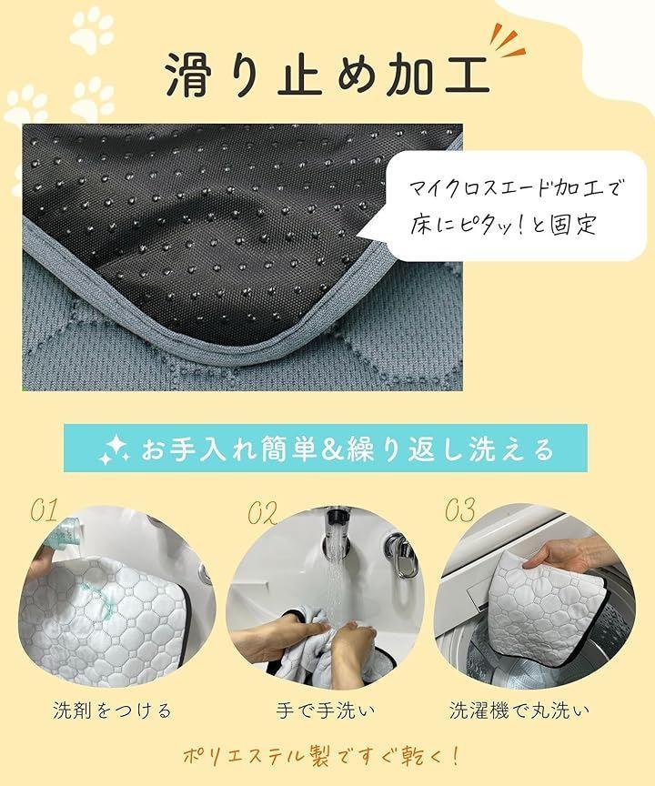おしっこシーツだけではなく、車用シートや、ソファー・椅子の上、ランチョンマットや、サークル・ケージや、お風呂上がりマットや、お出かけ時のマットとしてなど幅広い使い方が可能です。