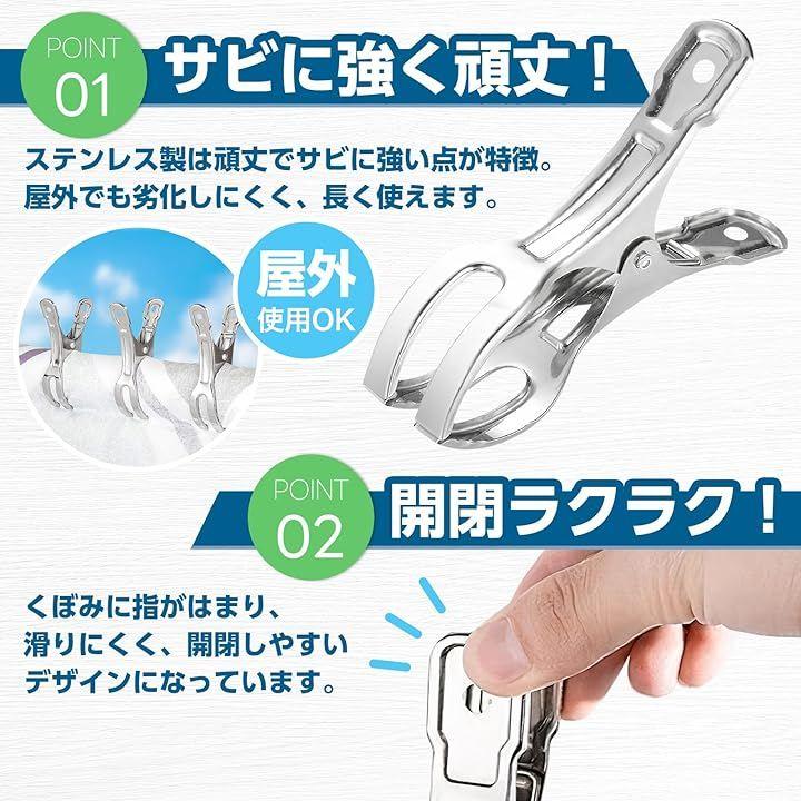 洗濯ばさみ 洗濯バサミ ステンレス 強力 大口サイズ 防風 布団 竿ばさみ ピンチ 物干し