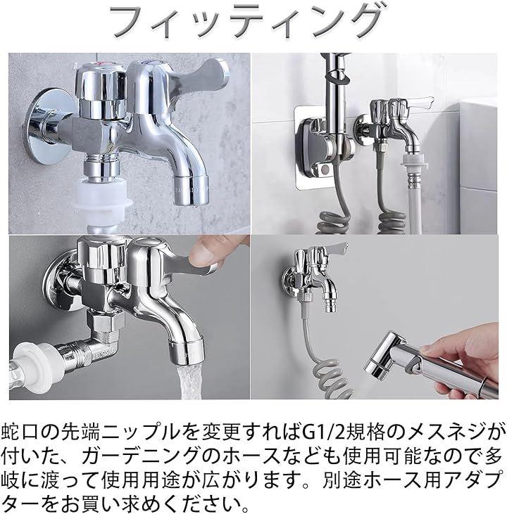 「フィッティング」蛇口の先端ニップルを変更すればG1/2規格のメスネジが付いた、ガーデニングのホースなども使用可能なので多岐に渡って使用用途が広がります。