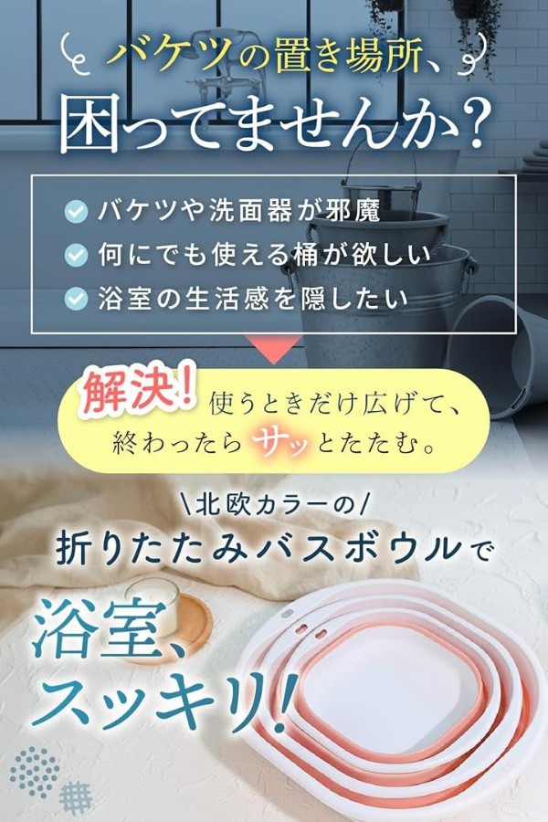 バケツ折り畳みタイプなので、省スペースで清潔に保てます。