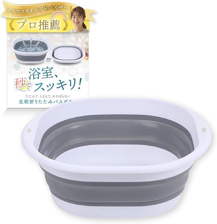 折りたたみ洗面器としても使え、棚や洗面台下にスッと収納可能。