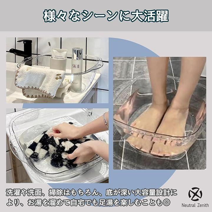 「様々なシーンに大活躍」洗濯、洗面、掃除はもちろん、底が深い大容量設計により、お湯を溜めて自宅でも足湯を楽しむこともできます。