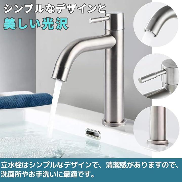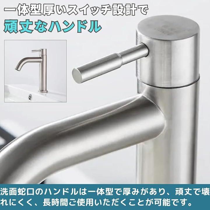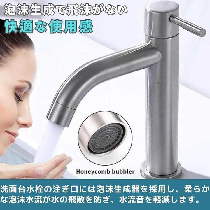 この洗面台用シングルレバー単水栓は304ステンレス鋼を使用し、錆を効果的に防ぎ、耐久性を向上させています。