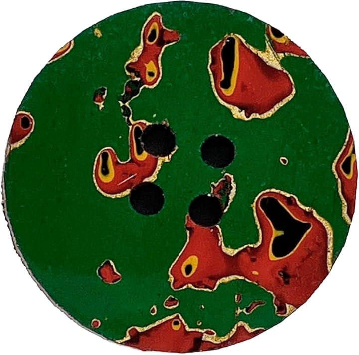 「津軽塗り唐塗仕上げ」緑地に模様が入った高級ボタン5個セット|直径1.8cm・4つ穴、深い艶と独特の模様が魅力