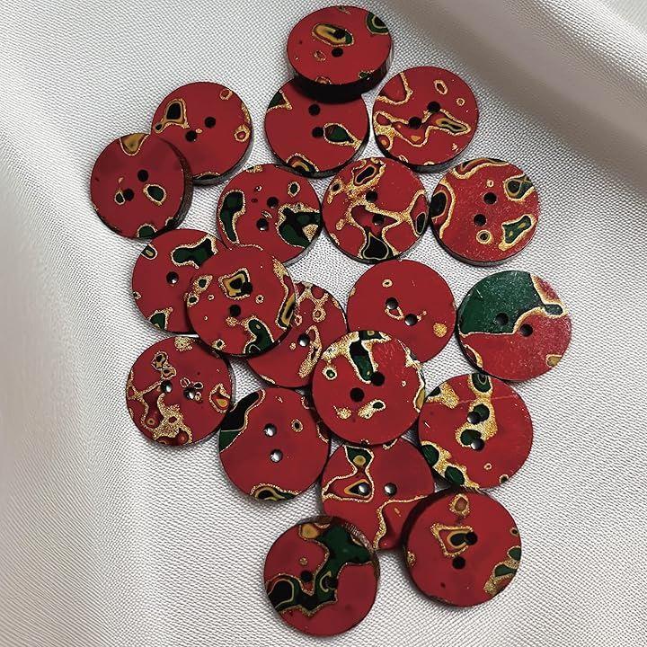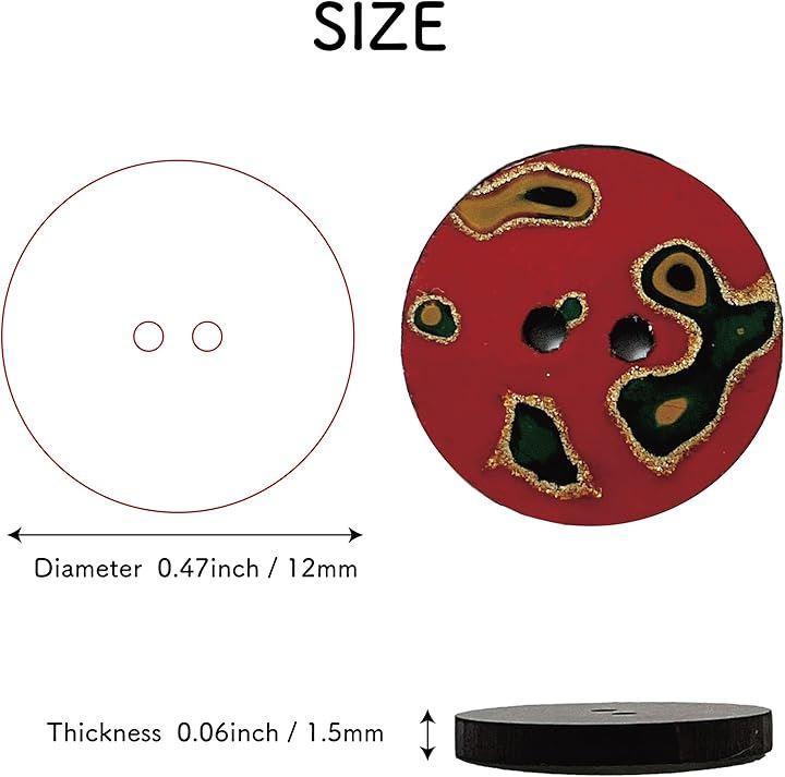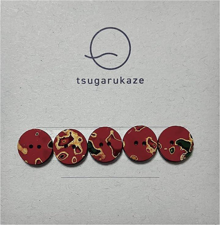 「津軽塗り唐塗仕上げ」美しい津軽塗のボタン5個セット|直径1.2cm・2つ穴、深い艶と独特の模様が魅力