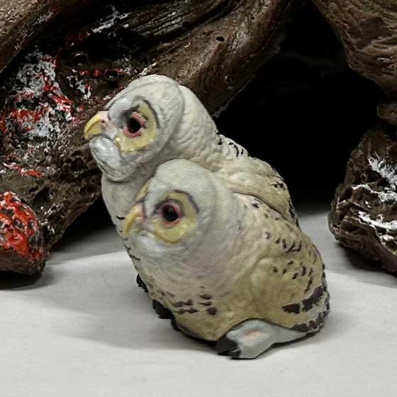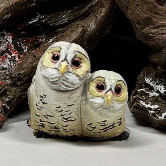 ・フクロウ・ヒナはかわいいヒナが2羽セットになった情景モデル風味の仕様、松村しのぶ本人が造形を担当しています